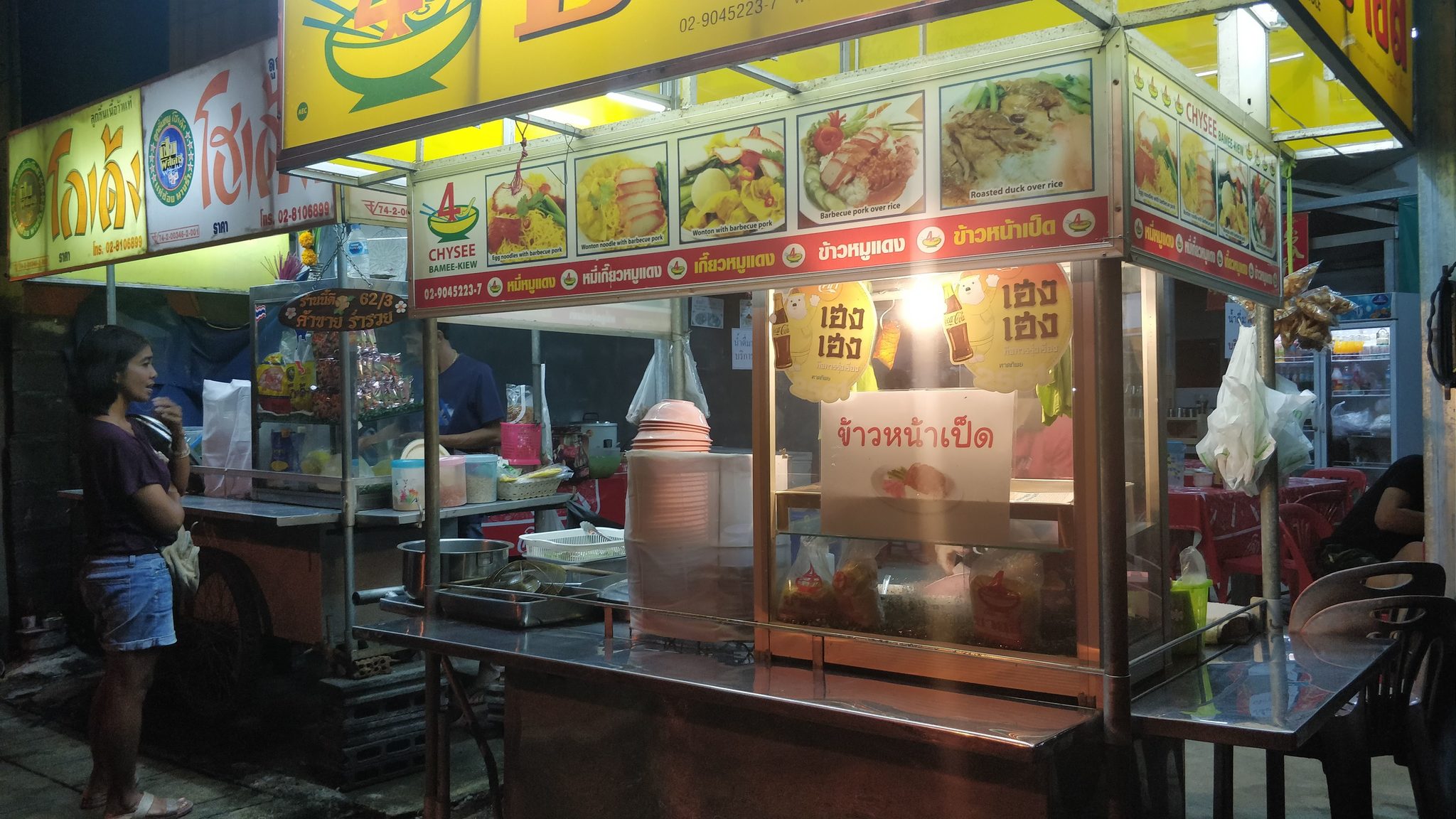 Вечером с 6 часов можно купить "суп" - лапшу с мясом, зеленью и бульоном. Стоит порция 50 бат. Фирма, которой принадлежат эти "макашницы", предлагают 4 вида супа. Нам больше нравится суп с первой картинки, в него входят лапша, зелень, нарезанное мясо и немного пельмешек (3-4 шт) с креветочным фаршем.